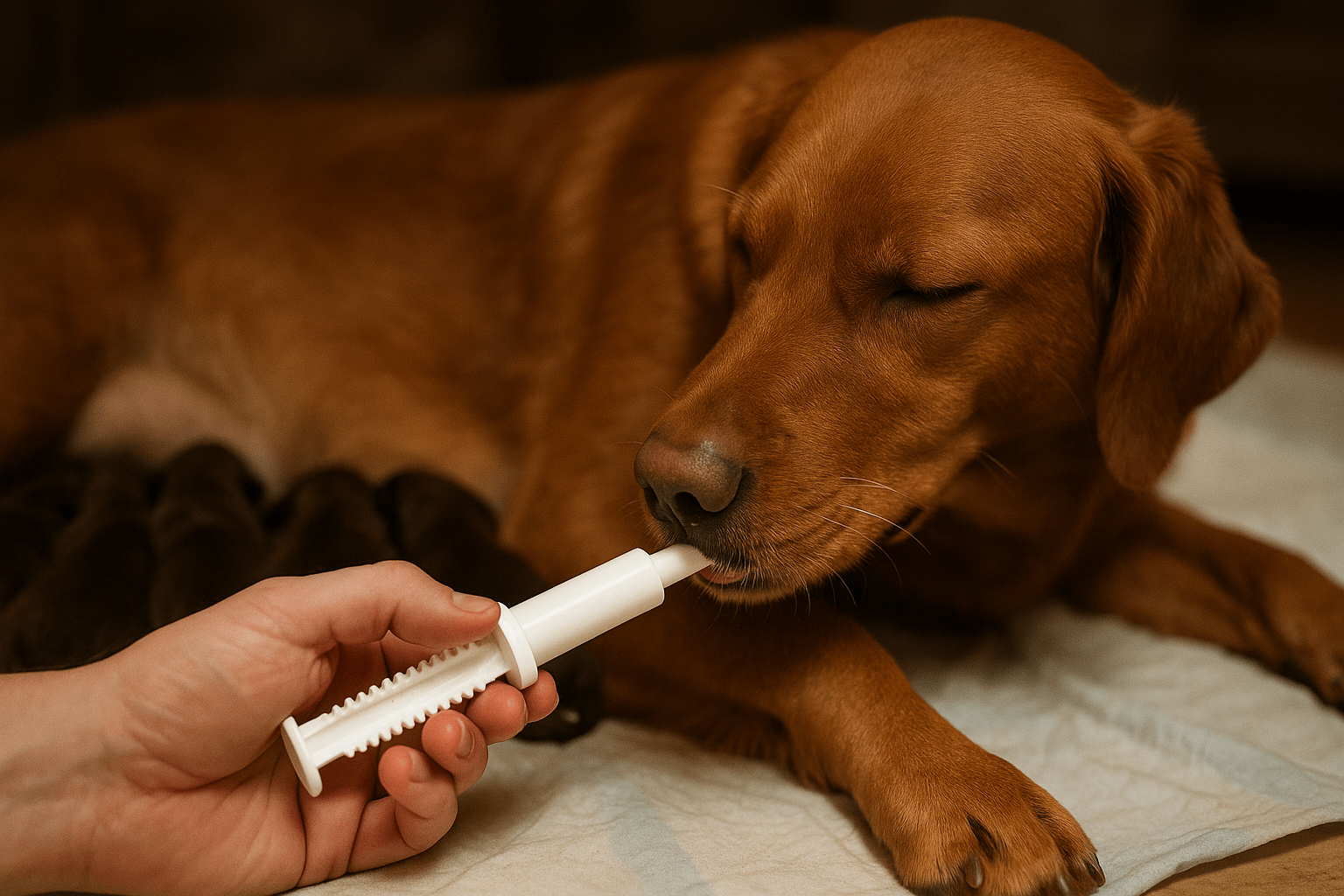 For emergency situations, injectable calcium gluconate works within minutes but can stop her heart if given incorrectly. This is why it’s strictly for veterinary use with heart monitoringโnever attempt this at home during dog whelping.